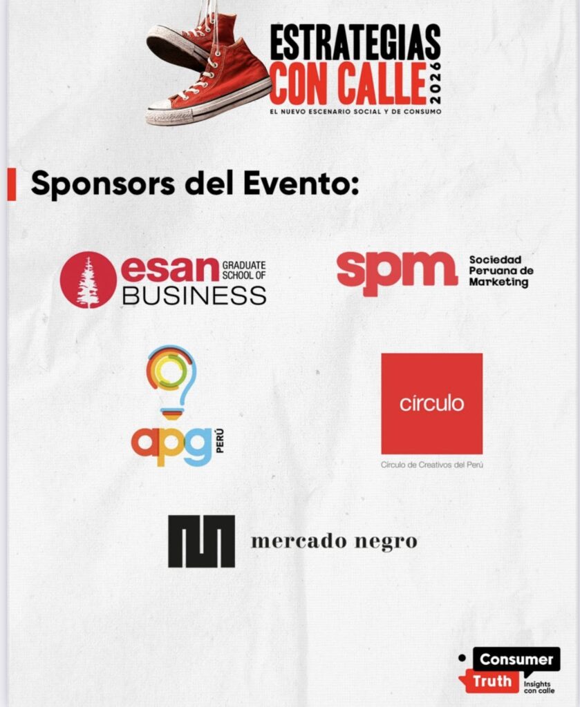 Acompañamos como sponsor el evento anual “Estrategias con Calle 2026”, organizado por Consumer Truth en el auditorio de la Universidad ESAN. Una cita imprescindible para la industria, donde se reunieron profesionales, marcas y planners que apuestan por la investigación estratégica y la creatividad como motores del crecimiento de los negocios.